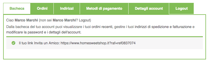 Crea un account su HomeSweetShop ed ottieni il tuo codice referral