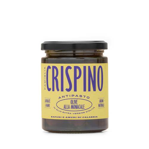 Olive nere di pezzatura media, conservate in olio, scaglie di peperoncino e aromi freschi. Eccellente l’abbinamento con antipasti freddi, secondi piatti a base di pesce, insalate.