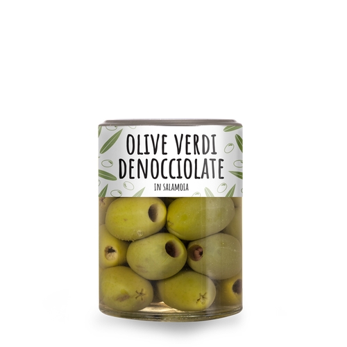 Descrizione: Olive verdi denocciolate in salamoia, dal tipico gusto dolce, di colore verde intenso, al naturale, senza nocciolo.
