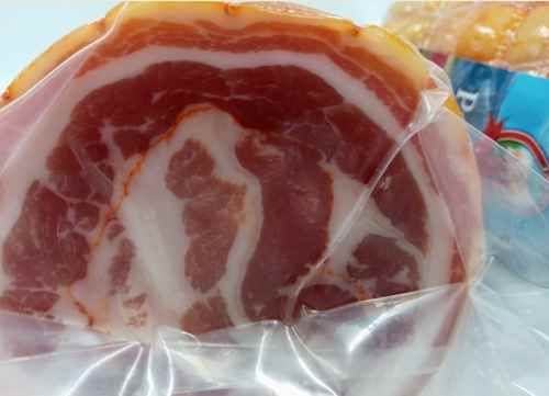 Descrizione: Salume tipico prodotto usando la parte superiore del lombo del suino. Si presenta di forma rettangolare ricoperta di spezie ed erbe aromatiche da un lato e dalla cotenna dall’altroIngredienti:   Carne di suino – sale – spezie– erbe aromaticheCaratteristiche Organolettiche: Odore intenso, tipico stagionato e speziato. Colore rosso scuro con grasso perlaceo.Sapore:delicato non salato. Struttura :consistente e compatta al taglio  Confezionamento: In buste trasparenti per alimenti saldate sottovuotoTemperatura  di conservazione:  0-4°C Codice prodotto: SSCPSA09 Confezione sottovuoto: 950/1000 gr