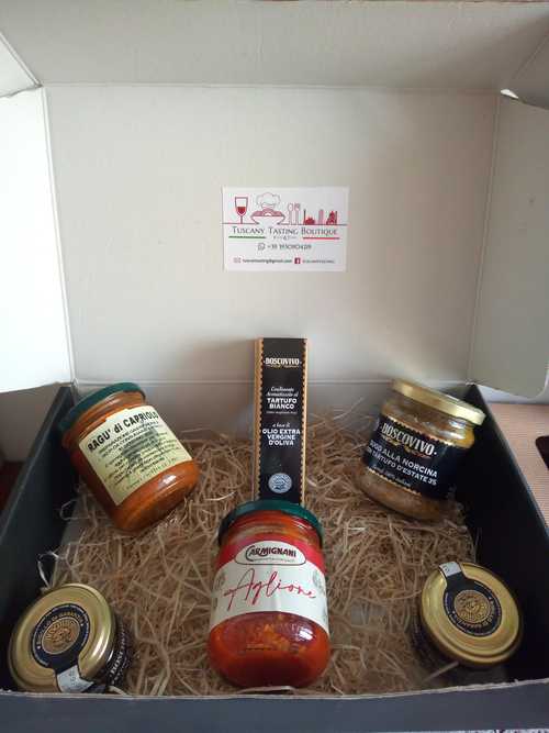 Venduto da: Tuscany Tasting Boutique1 ragu’ capriolo -1 ragu’ aglione, 1 olio al tartufo – 1 fettine tartufo o crema di tartufo